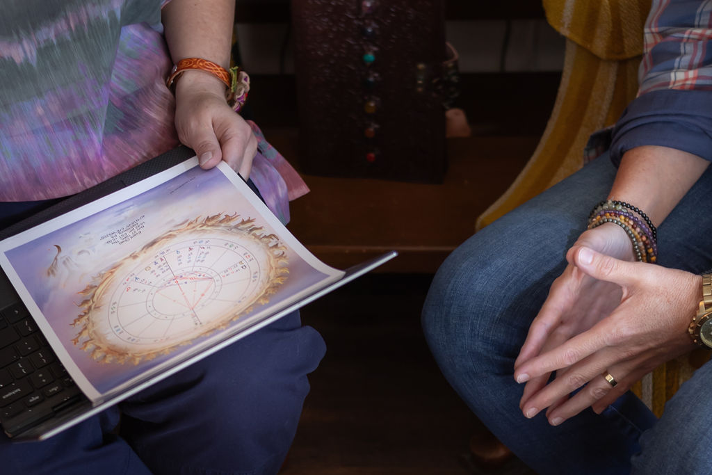 Each session is a sacred conversation with you and your chart. Through compassionate witnessing, reflection, and creative processing, you’ll begin to recognize your own rhythm within the larger cosmic dance.